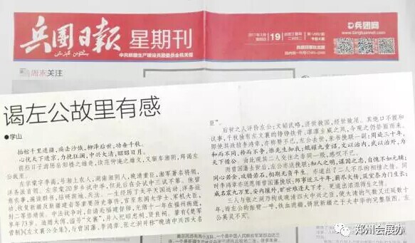 2017年3月19日《兵团日报》全文刊发《谒左公故里有感》