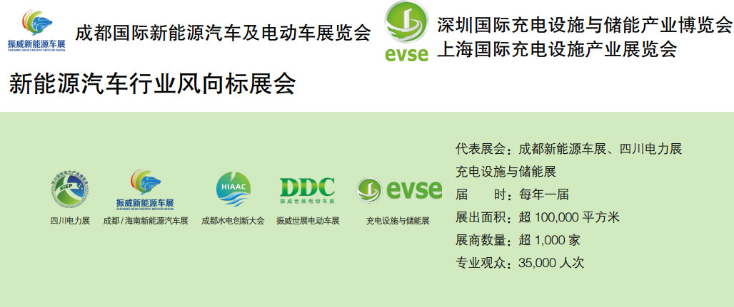 成都国际新能源汽车及电动车展览会:辐射西南五省的新能源汽车产业旗舰展,联动昆明、海南等多地打造区域展群,覆盖整车、充电设备等全产业链,助力西南新能源汽车市场普及与技术升级,是振威会展在会展领域悉心打造的新能源品牌版块,为企业打造集品牌展示、新品发布、技术交流、贸易合作、宣传推广、国际研讨于一体,推动行业企业转型升级提供一站式会展平台。