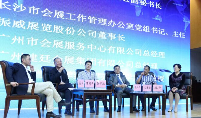 对话沙龙环节在长沙市会展工作管理办公室党组书记、主任陈树中、振威展览股份董事长张学山、广州市会展服务中心有限公司总经理欧阳云、广州建廷会展集团有限公司总经理毛再荣、华南理工大学经济与贸易学院副院长江金波五位嘉宾中展开,构成了城市、企业、院校3个互动的新模式。对话沙龙环节更让观众与大咖充分互动,展现智慧的碰撞、思想的交流。