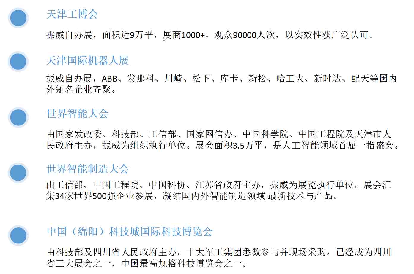 仅在装备制造、消费电子科技的版块中,振威的优质展会项目(含承接政府展)就有十余个,其中包含:
