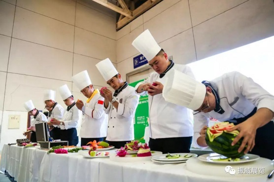 新奇特果蔬工匠技艺展上,来自烟台工贸技师学院烹饪技术系的10位学生为到场观众进行果蔬艺术雕刻及刀功表演雕刻,烟台市鲁菜研究所的中国鲁菜烹饪大师包淑圣先生做的“国魂蒙眼刻花”表演赢得活动现场热烈掌声,令到场观众叹为观止,为到场的各位观众呈现了一场技艺精湛、精彩绝伦的果蔬雕刻盛宴。