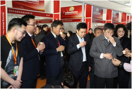 哈尔滨贸促会会长王国文、振威展览董事长张学山陪同哈尔滨市委副书记、市长孙喆参观2019哈尔滨进口食品博览会