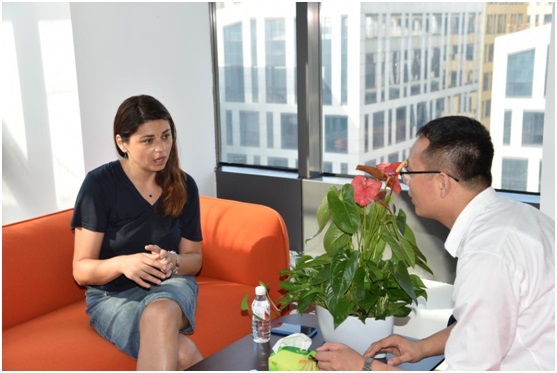 罗马尼亚议会众议院外交顾问Popa Diana-Melania女士(左)与振威员工交流(右)