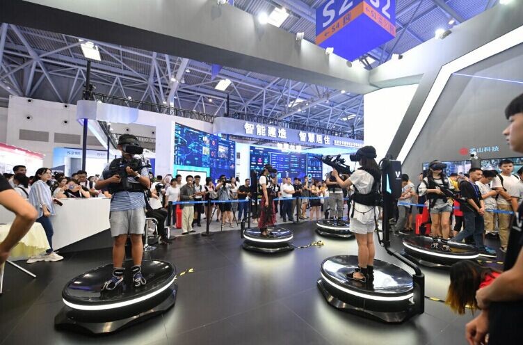 2019年智博会现场,观众体验智能设备