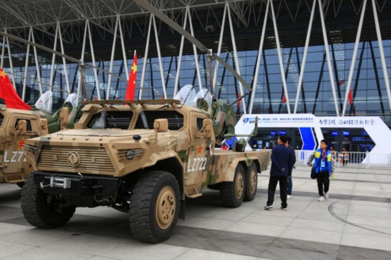 展馆室外广场展出国庆阅兵特种装备“猎鹰”旋翼机