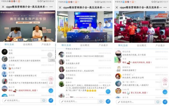 以振威展览7月初举办的一场“cippe精准营销推介会—高压流体系列产品专场”为例,振威通过行业深度调研,将话题精准锁定在高压流体领域,邀请了高压流体行业领军企业烟台杰瑞石油服务集团股份有限公司(简称杰瑞)与苏州道森钻采设备股份有限公司(简称道森)莅临直播间。直播现场邀请了中石油集团高级专家、中石油勘探开发研究院首席专家胥云教授、中国石油集团公司井控巡视办公室路继臣副主任以及中国海油井控中心黄亮主任等专家莅临直播间,帮助企业把脉行业发展动向,透析产业发展未来。
