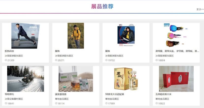 据统计,开幕式刚刚一小时,线上冰雪博览会数字平台官方网站和小程序累计浏览量就已达9313万。博览会突出冰雪特色,设置冰雪设备器材、冰雪服装服饰、冰场雪场周边、冰雕工具、冰雪旅游、寒地食品等六大主题展示专区。组织和吸引包括安踏集团、绿地集团、中粮集团、雀巢中国、中国银行、迪卡侬等近500家世界500强企业及国际知名企业、品牌参展,4000余家采购企业入驻线上平台参会。