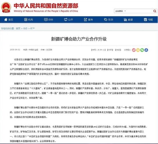 自然资源部:新疆矿博会助力产业合作升级 一批新科技矿业装备将集中亮相