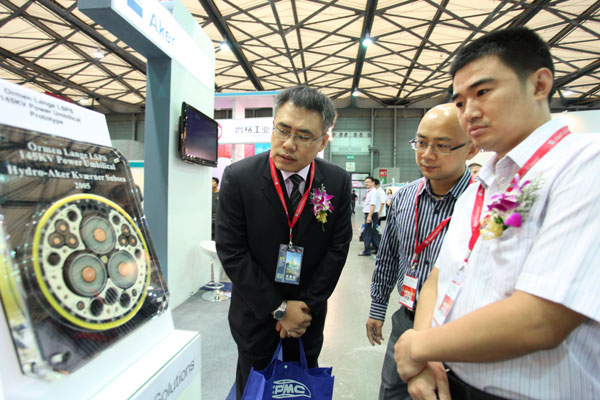 挪威国家石油公司中国区采购经理郭强等人参观Aker Solutions展品