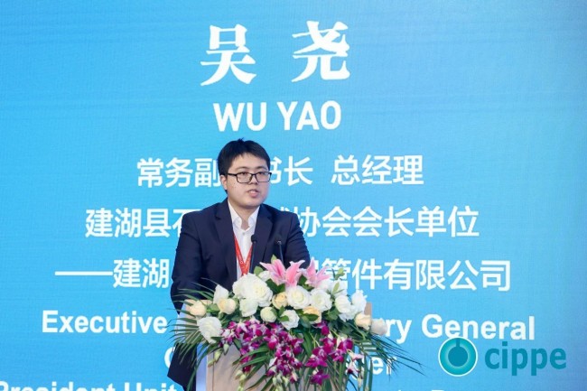 江苏省建湖县石油机械协会常务副秘书长 建湖县鸿达阀门管件有限公司海外事业部总经理吴尧 出席开幕式并致辞