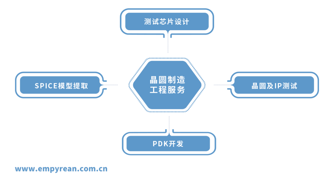 服务内容覆盖硅基半导体、化合物半导体、分立器件及封装等应用领域,涉及测试芯片设计、晶圆及IP测试、SPICE模型提取、PDK开发、基础IP设计服务等。