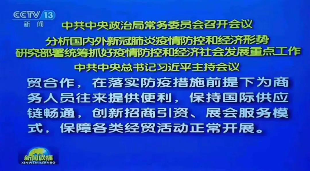 日前,中共中央政治局常务委员会召开会议,分析国内外新冠肺炎疫情防控和经济形势,研究部署统筹抓好疫情防控和经济社会发展重点工作。中共中央总书记习近平主持会议并发表重要讲话。 其中,会议强调,要加强对国际经济形势的研判分析,及时制定有针对性的政策举措。要兼顾疫情防控和对外经贸合作,在落实防疫措施前提下为商务人员往来提供便利,保持国际供应链畅通,创新招商引资、展会服务模式,保障各类经贸活动正常开展。...