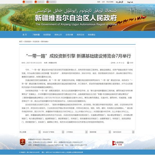 【新疆政府网】“一带一路”成投资新引擎 新疆基础建设博览会7月举行