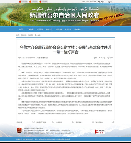 新疆政府网刊文:乌鲁木齐会展行业协会会长张学林:会展与基建合体共谱一带一路好声音 原文如下: 5月,较受瞩目的热点新闻莫过于“一带一路”国际合作高峰论坛的召开。中国交通运输部部长李小鹏强调,设施联通是合作发展的基础,要着力推动陆上、海上、天上、网上“四位一体”的联通,这对于进一步加快推动“一带一路”基础设施互联互通,具有很强的指导意义。 随着“一带一路”倡议逐渐落实,新疆作为丝绸之路核心区,深化...