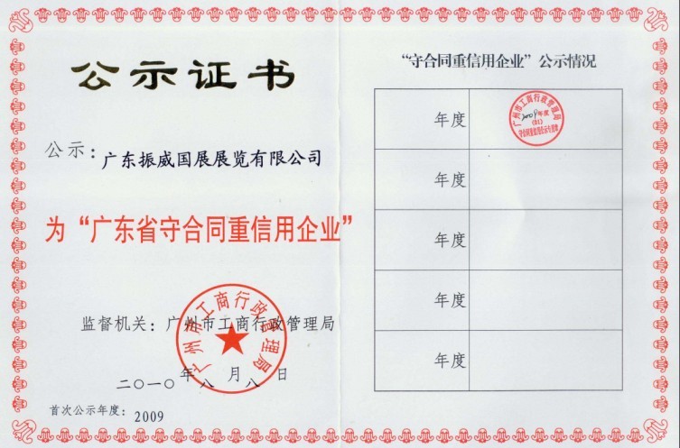 近日,从广东振威传出喜讯,公司通过广东省工商行政管理局主办的审核评选,被授予2009年度“守合同重信用企业”称号。 2009年度“广东省守合同重信用