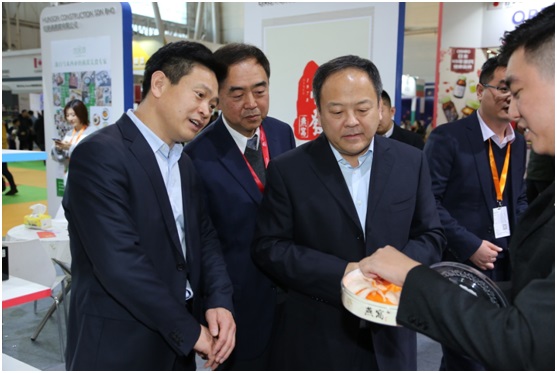 哈尔滨贸促会会长王国文、振威展览董事长张学山陪同哈尔滨市委副书记、市长孙喆参观2019哈尔滨进口食品博览会